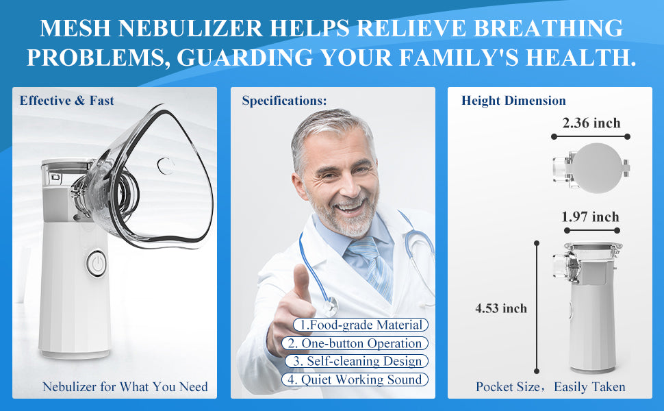 Este nebulizador inalámbrico portátil es perfecto para niños, adolescentes y adultos. Proporciona un tratamiento rápido y eficaz para problemas respiratorios como el asma y la bronquitis. Fácil de usar y transportar, es ideal para aquellos que necesiten tratamiento en cualquier lugar y en cualquier momento.