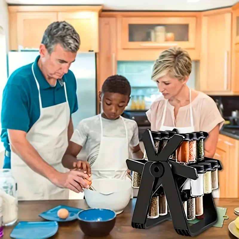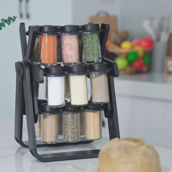 Este organizador giratorio de especias con 18 tarros facilita el acceso y almacenamiento eficiente de tus especias. Su diseño rotatorio permite una selección rápida y ordenada, optimizando el espacio en la cocina y manteniendo tus especias frescas y bien visibles. Ideal para chefs que buscan funcionalidad y practicidad en un solo producto.
